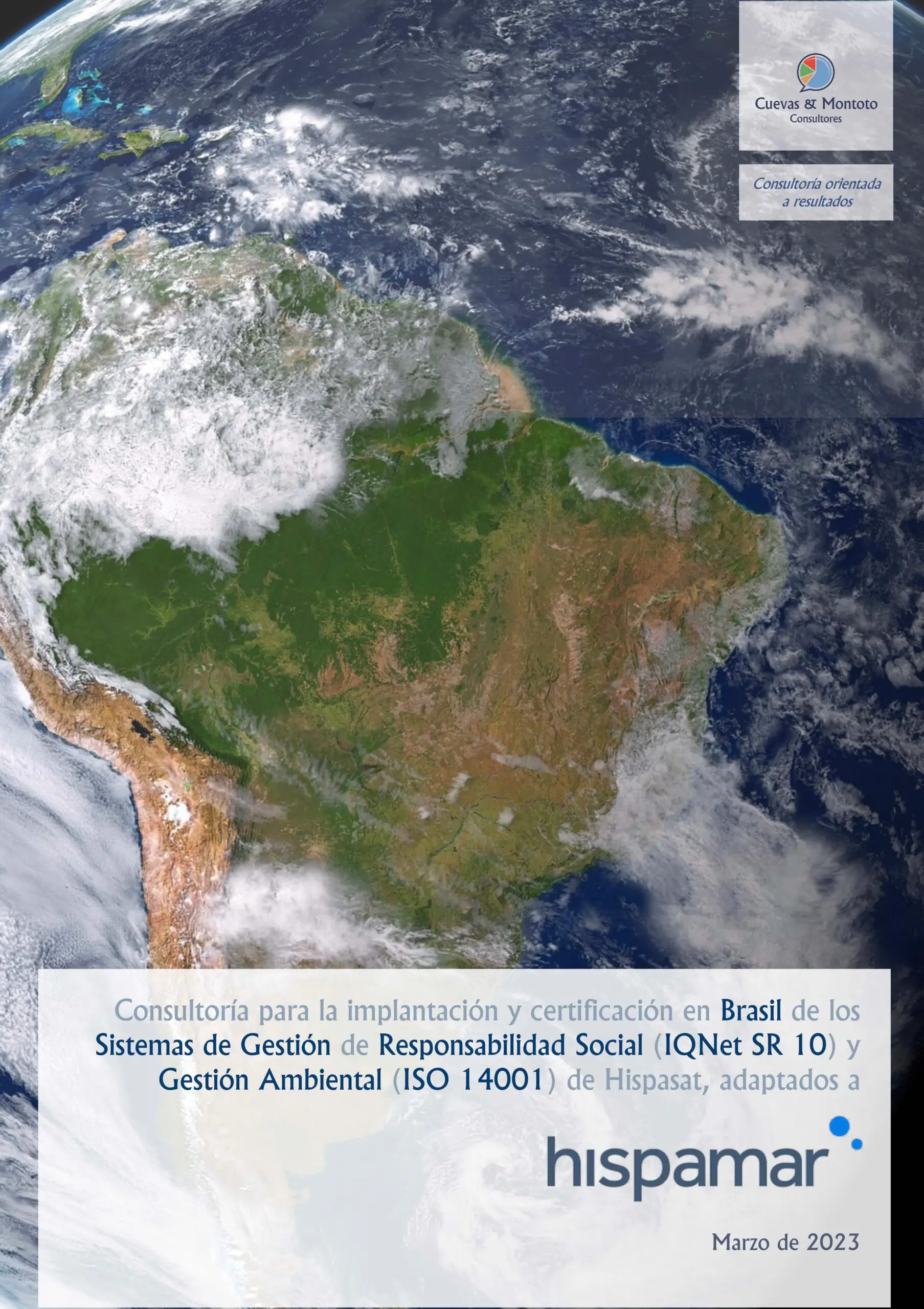 A Cuevas & Montoto Consultores chegou recentemente a um acordo com a Hispamar Satélites, subsidiária no Brasil do Grupo Hispasat, pelo qual lhe forneceremos a consultoria necessária para projetar e implementar um Sistema de Gestão de Responsabilidade Social em sua organização de acordo com a norma internacional IQNet SR-10.